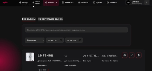 Shadow Rise — платформа для независимых музыкантов, обеспечивающая бесплатное распространение музыки по популярным сервисам, с полной поддержкой артистов и гарантией сохранения прав и роялти.